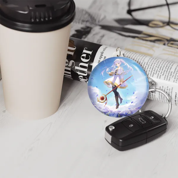 خندالو جاکلیدی انیمه فریرن (Frieren) را با استفاده از روکش سلفون حرارتی مات مخملی ضدخش تولید می کند که خاصیت ضدخش بودن آن، کمک میکند تا عمر مفید استفاده از جاکلیدی ها افزایش پیدا کند و با یک خراش ساده مثل برخورد سطح ناخن با محصول، دچار و خط و خش نشود.