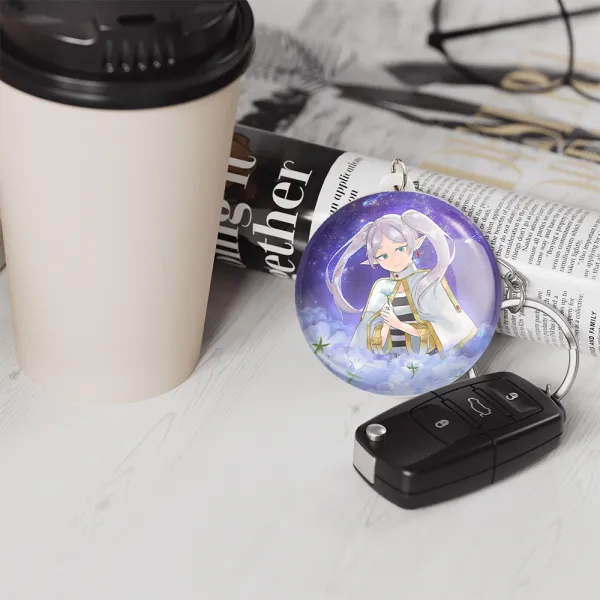 خندالو جاکلیدی انیمه فریرن (Frieren) را با استفاده از روکش سلفون حرارتی مات مخملی ضدخش تولید می کند که خاصیت ضدخش بودن آن، کمک میکند تا عمر مفید استفاده از جاکلیدی ها افزایش پیدا کند و با یک خراش ساده مثل برخورد سطح ناخن با محصول، دچار و خط و خش نشود.