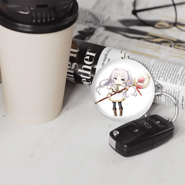 خندالو جاکلیدی انیمه فریرن (Frieren) را با استفاده از روکش سلفون حرارتی مات مخملی ضدخش تولید می کند که خاصیت ضدخش بودن آن، کمک میکند تا عمر مفید استفاده از جاکلیدی ها افزایش پیدا کند و با یک خراش ساده مثل برخورد سطح ناخن با محصول، دچار و خط و خش نشود.
