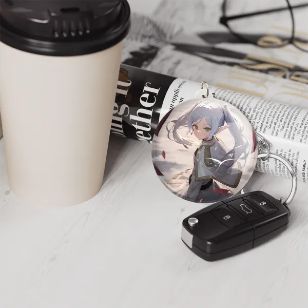 خندالو جاکلیدی انیمه فریرن (Frieren) را با استفاده از روکش سلفون حرارتی مات مخملی ضدخش تولید می کند که خاصیت ضدخش بودن آن، کمک میکند تا عمر مفید استفاده از جاکلیدی ها افزایش پیدا کند و با یک خراش ساده مثل برخورد سطح ناخن با محصول، دچار و خط و خش نشود.