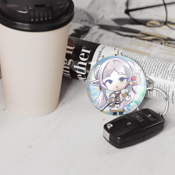خندالو جاکلیدی انیمه فریرن (Frieren) را با استفاده از روکش سلفون حرارتی مات مخملی ضدخش تولید می کند که خاصیت ضدخش بودن آن، کمک میکند تا عمر مفید استفاده از جاکلیدی ها افزایش پیدا کند و با یک خراش ساده مثل برخورد سطح ناخن با محصول، دچار و خط و خش نشود.