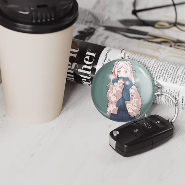 خندالو جاکلیدی انیمه فریرن (Frieren) را با استفاده از روکش سلفون حرارتی مات مخملی ضدخش تولید می کند که خاصیت ضدخش بودن آن، کمک میکند تا عمر مفید استفاده از جاکلیدی ها افزایش پیدا کند و با یک خراش ساده مثل برخورد سطح ناخن با محصول، دچار و خط و خش نشود.