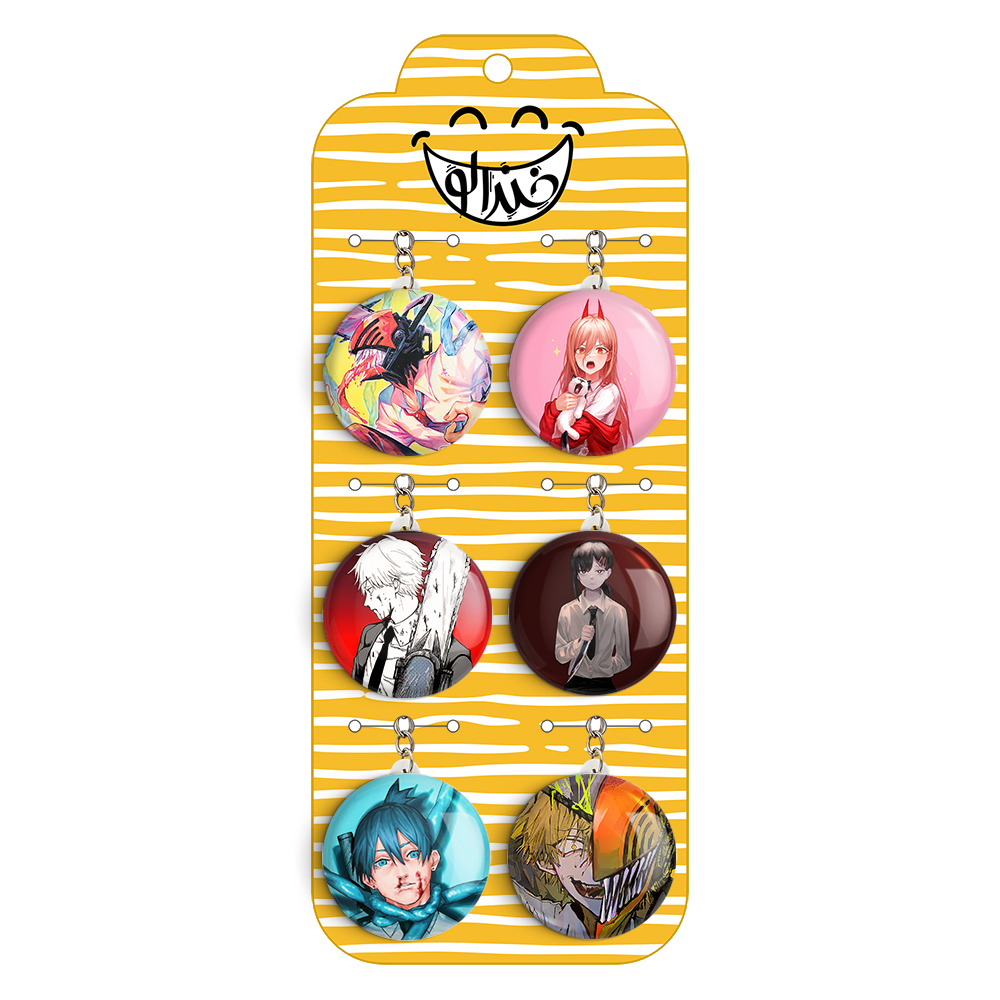 پک 6 عددی جاکلیدی خندالو طرح انیمه مرد اره ای (Chainsaw Man) با استفاده از روکش سلفون حرارتی مات ضدخش تولید شده که خاصیت ضدخش بودن آن عمر مفید استفاده از جاکلیدی ها را افزایش میدهد. چاپ جاکلیدی ها با دستگاه های استاندارد و با بهترین سطح کیفیت صورت گرفته و طرح با شفافیتی مثال زدنی و با سلفون چسبی تولید شده است که باعث شده محصول نهایی بدون شکست نور دیده شود.