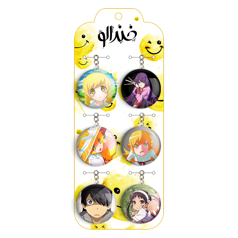 پک 6 عددی جاکلیدی خندالو طرح انیمه مونوگاتاری (Monogatar) با استفاده از روکش سلفون حرارتی مات ضدخش تولید شده که خاصیت ضدخش بودن آن عمر مفید استفاده از جاکلیدی ها را افزایش میدهد. چاپ جاکلیدی ها با دستگاه های استاندارد و با بهترین سطح کیفیت صورت گرفته و طرح با شفافیتی مثال زدنی و با سلفون چسبی تولید شده است که باعث شده محصول نهایی بدون شکست نور دیده شود.