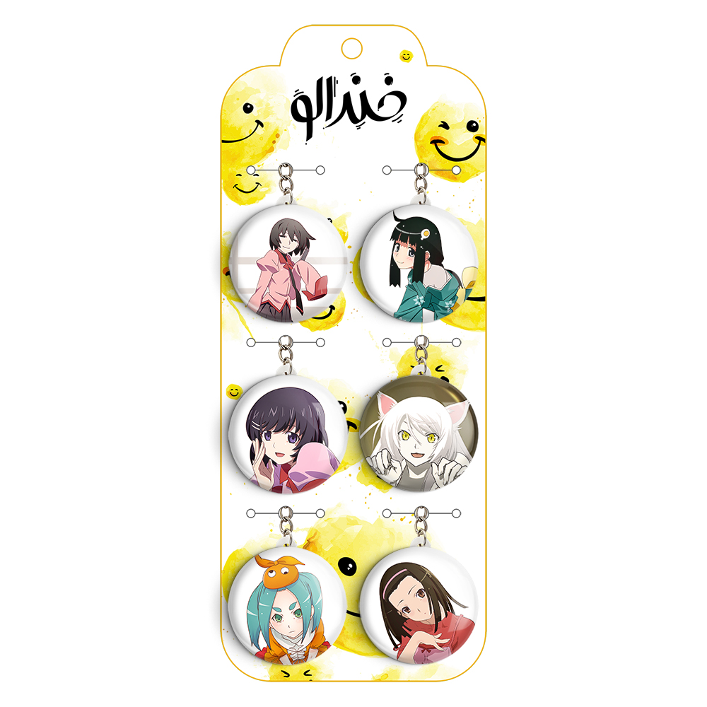 پک 6 عددی جاکلیدی خندالو طرح انیمه مونوگاتاری (Monogatar) با استفاده از روکش سلفون حرارتی مات ضدخش تولید شده که خاصیت ضدخش بودن آن عمر مفید استفاده از جاکلیدی ها را افزایش میدهد. چاپ جاکلیدی ها با دستگاه های استاندارد و با بهترین سطح کیفیت صورت گرفته و طرح با شفافیتی مثال زدنی و با سلفون چسبی تولید شده است که باعث شده محصول نهایی بدون شکست نور دیده شود. همچنین بسته بندی جذاب و مینیمال جاکلیدی ها، آنها را محصولی مناسب هدیه کرده است. زنجیر و حلقه بکار برده شده در جاکلیدی خندالو از نوع حلقه درجه یک و ضخیم و محکم بوده و حین استفاده آسیب نمی بیند. قطعی پشتی جاکلیدی از جنس ABS شفاف سفید رنگ تولید شده که در مقابل خط و خش مقاوم بوده و به هیچ عنوان دچار شکستگی نخواهد شد.