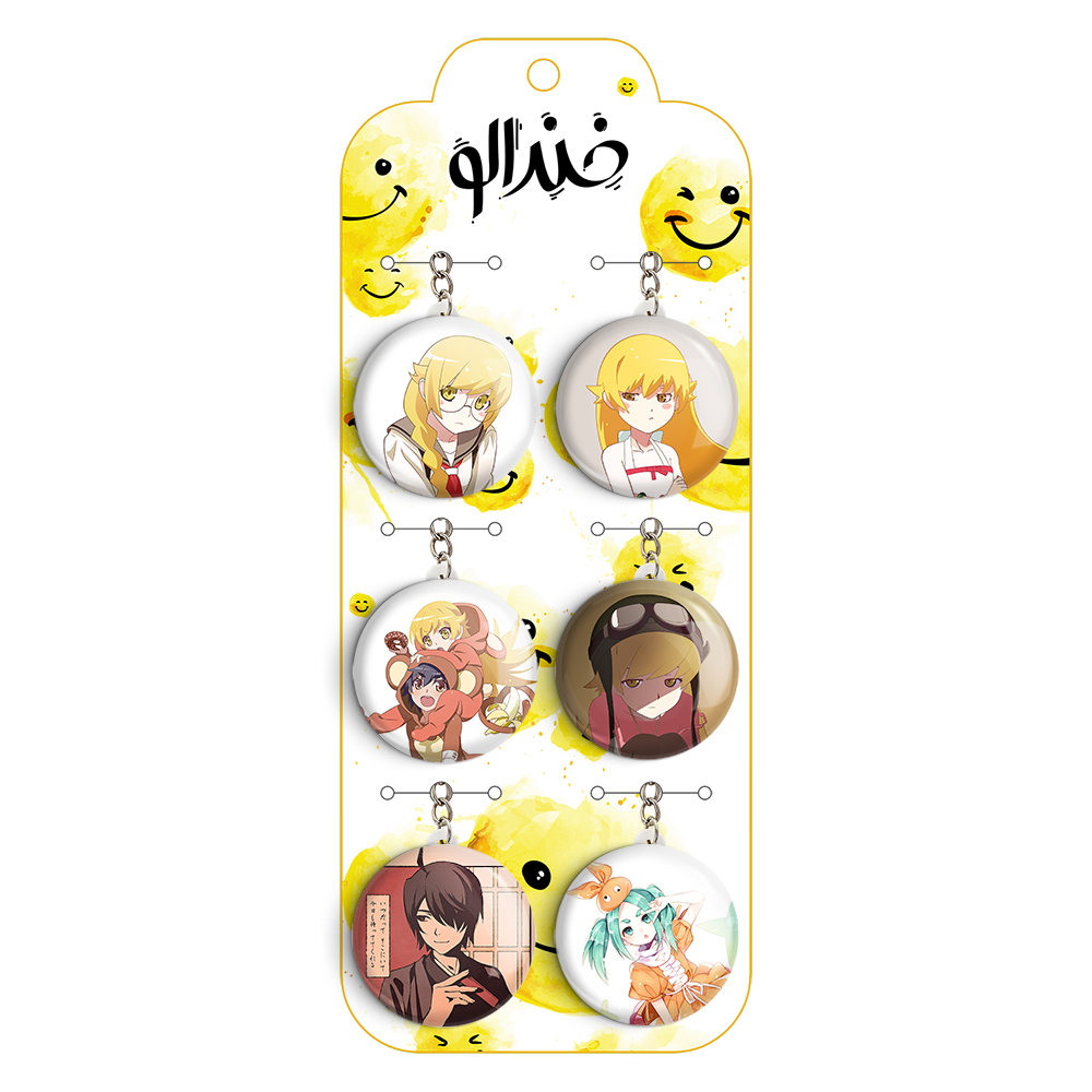پک 6 عددی جاکلیدی خندالو طرح انیمه مونوگاتاری (Monogatar) با استفاده از روکش سلفون حرارتی مات ضدخش تولید شده که خاصیت ضدخش بودن آن عمر مفید استفاده از جاکلیدی ها را افزایش میدهد. چاپ جاکلیدی ها با دستگاه های استاندارد و با بهترین سطح کیفیت صورت گرفته و طرح با شفافیتی مثال زدنی و با سلفون چسبی تولید شده است که باعث شده محصول نهایی بدون شکست نور دیده شود. همچنین بسته بندی جذاب و مینیمال جاکلیدی ها، آنها را محصولی مناسب هدیه کرده است. زنجیر و حلقه بکار برده شده در جاکلیدی خندالو از نوع حلقه درجه یک و ضخیم و محکم بوده و حین استفاده آسیب نمی بیند. قطعی پشتی جاکلیدی از جنس ABS شفاف سفید رنگ تولید شده که در مقابل خط و خش مقاوم بوده و به هیچ عنوان دچار شکستگی نخواهد شد.