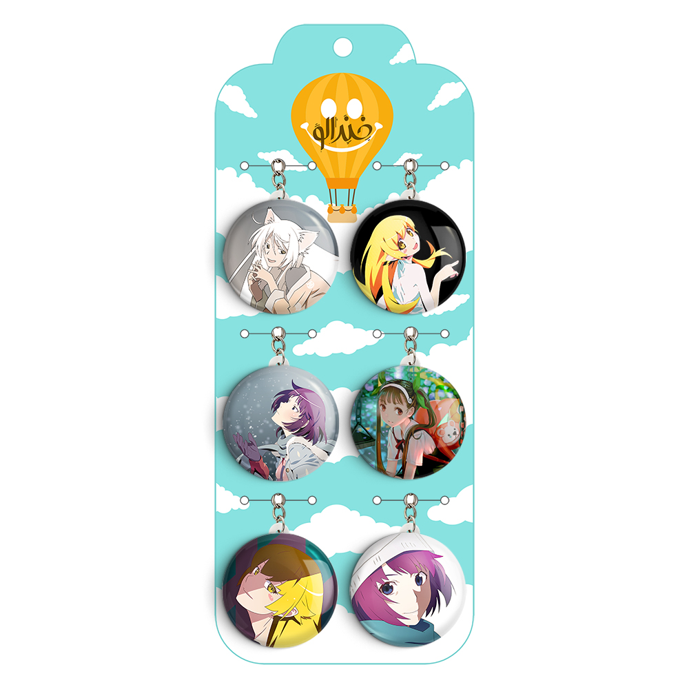 پک 6 عددی جاکلیدی خندالو طرح انیمه مونوگاتاری (Monogatar) با استفاده از روکش سلفون حرارتی مات ضدخش تولید شده که خاصیت ضدخش بودن آن عمر مفید استفاده از جاکلیدی ها را افزایش میدهد. چاپ جاکلیدی ها با دستگاه های استاندارد و با بهترین سطح کیفیت صورت گرفته و طرح با شفافیتی مثال زدنی و با سلفون چسبی تولید شده است که باعث شده محصول نهایی بدون شکست نور دیده شود.