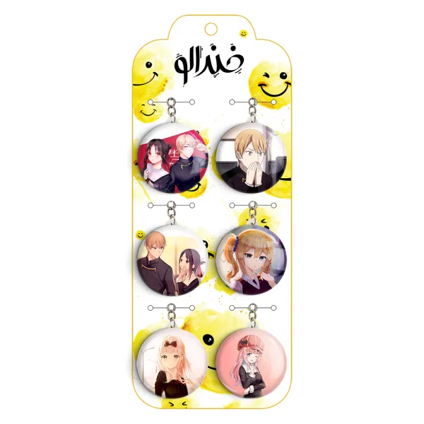 پک 6 عددی جاکلیدی خندالو طرح انیمه کاگویا ساما (Kaguya sama) با استفاده از روکش سلفون حرارتی مات ضدخش تولید شده که خاصیت ضدخش بودن آن عمر مفید استفاده از جاکلیدی ها را افزایش میدهد. چاپ جاکلیدی ها با دستگاه های استاندارد و با بهترین سطح کیفیت صورت گرفته و طرح با شفافیتی مثال زدنی و با سلفون چسبی تولید شده است که باعث شده محصول نهایی بدون شکست نور دیده شود.