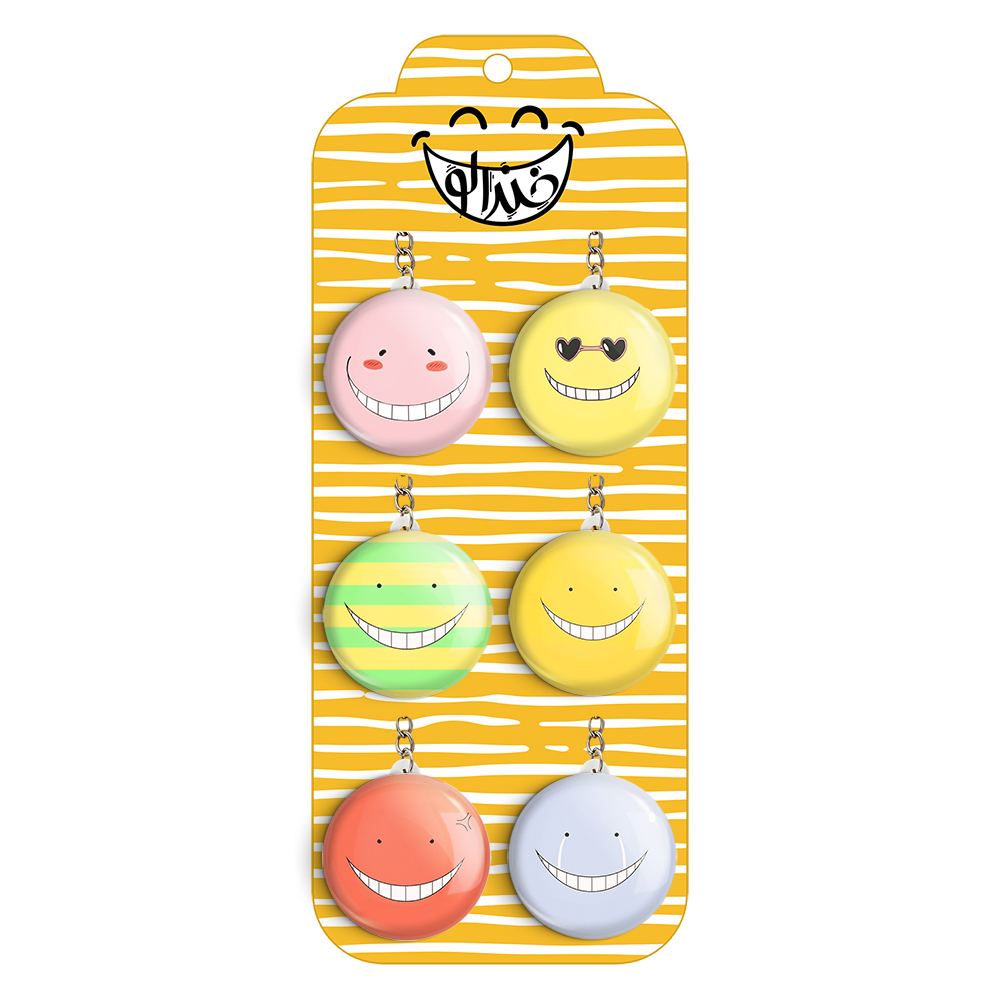 پک 6 عددی جاکلیدی خندالو طرح انیمه کلاس آدمکشی با استفاده از روکش سلفون حرارتی مات ضدخش تولید شده که خاصیت ضدخش بودن آن عمر مفید استفاده از جاکلیدی ها را افزایش میدهد. چاپ جاکلیدی ها با دستگاه های استاندارد و با بهترین سطح کیفیت صورت گرفته و طرح با شفافیتی مثال زدنی و با سلفون چسبی تولید شده است که باعث شده محصول نهایی بدون شکست نور دیده شود. همچنین بسته بندی جذاب و مینیمال جاکلیدی ها، آنها را محصولی مناسب هدیه کرده است. زنجیر و حلقه بکار برده شده در جاکلیدی خندالو از نوع حلقه درجه یک و ضخیم و محکم بوده و حین استفاده آسیب نمی بیند. قطعی پشتی جاکلیدی از جنس ABS شفاف سفید رنگ تولید شده که در مقابل خط و خش مقاوم بوده و به هیچ عنوان دچار شکستگی نخواهد شد.
