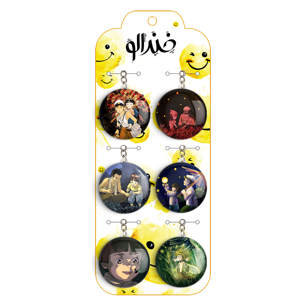 پک 6 عددی جاکلیدی خندالو طرح انیمیشن قبرستان کرم های شب تاب با استفاده از روکش سلفون حرارتی مات ضدخش تولید شده که خاصیت ضدخش بودن آن عمر مفید استفاده از جاکلیدی ها را افزایش میدهد. چاپ جاکلیدی ها با دستگاه های استاندارد و با بهترین سطح کیفیت صورت گرفته و طرح با شفافیتی مثال زدنی و با سلفون چسبی تولید شده است که باعث شده محصول نهایی بدون شکست نور دیده شود. همچنین بسته بندی جذاب و مینیمال جاکلیدی ها، آنها را محصولی مناسب هدیه کرده است. زنجیر و حلقه بکار برده شده در جاکلیدی خندالو از نوع حلقه درجه یک و ضخیم و محکم بوده و حین استفاده آسیب نمی بیند. قطعی پشتی جاکلیدی از جنس ABS شفاف سفید رنگ تولید شده که در مقابل خط و خش مقاوم بوده و به هیچ عنوان دچار شکستگی نخواهد شد.