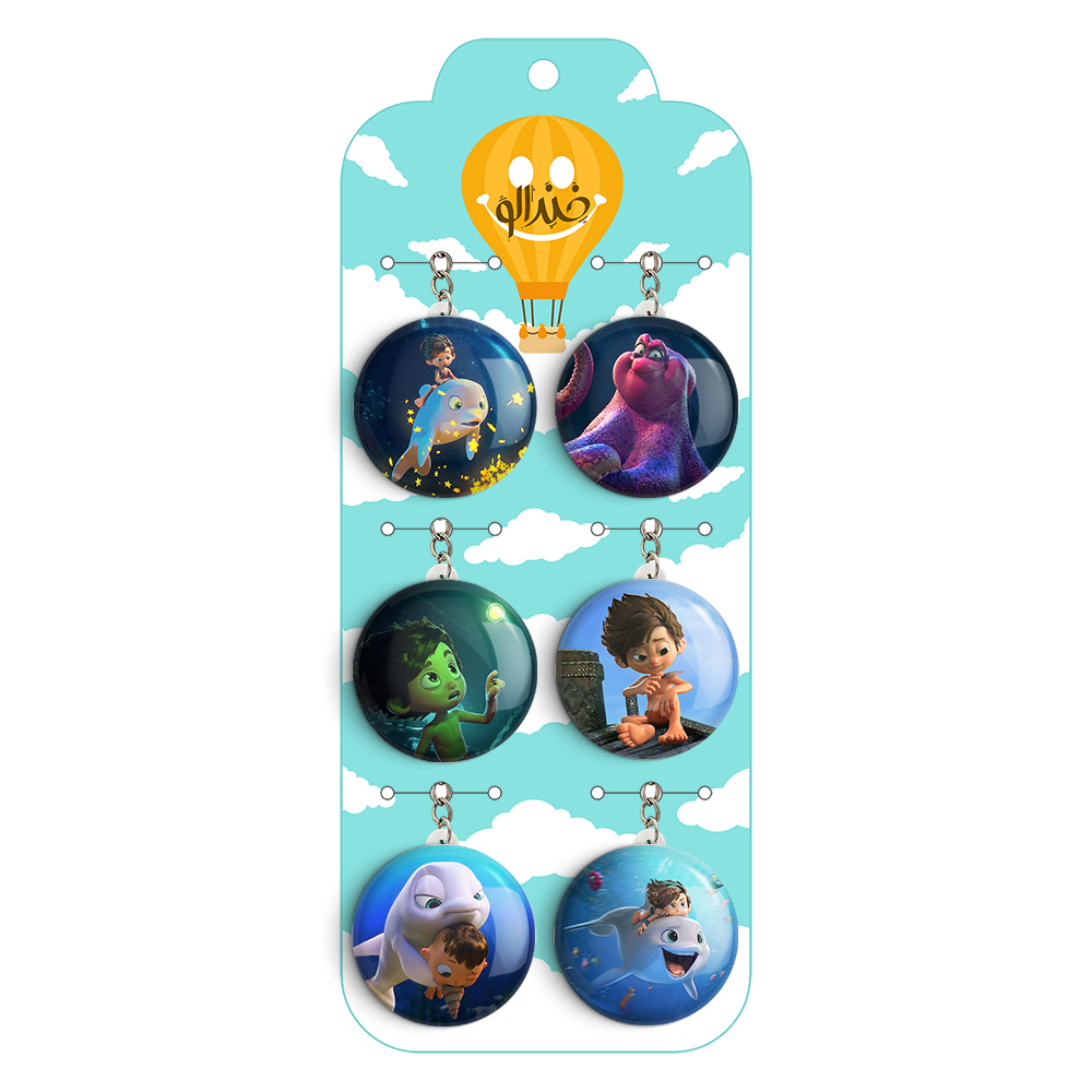 پک 6 عددی جاکلیدی خندالو طرح انیمیشن پسر دلفینی با استفاده از روکش سلفون حرارتی مات ضدخش تولید شده که خاصیت ضدخش بودن آن عمر مفید استفاده از جاکلیدی ها را افزایش میدهد. چاپ جاکلیدی ها با دستگاه های استاندارد و با بهترین سطح کیفیت صورت گرفته و طرح با شفافیتی مثال زدنی و با سلفون چسبی تولید شده است که باعث شده محصول نهایی بدون شکست نور دیده شود. همچنین بسته بندی جذاب و مینیمال جاکلیدی ها، آنها را محصولی مناسب هدیه کرده است. زنجیر و حلقه بکار برده شده در جاکلیدی خندالو از نوع حلقه درجه یک و ضخیم و محکم بوده و حین استفاده آسیب نمی بیند. قطعی پشتی جاکلیدی از جنس ABS شفاف سفید رنگ تولید شده که در مقابل خط و خش مقاوم بوده و به هیچ عنوان دچار شکستگی نخواهد شد.