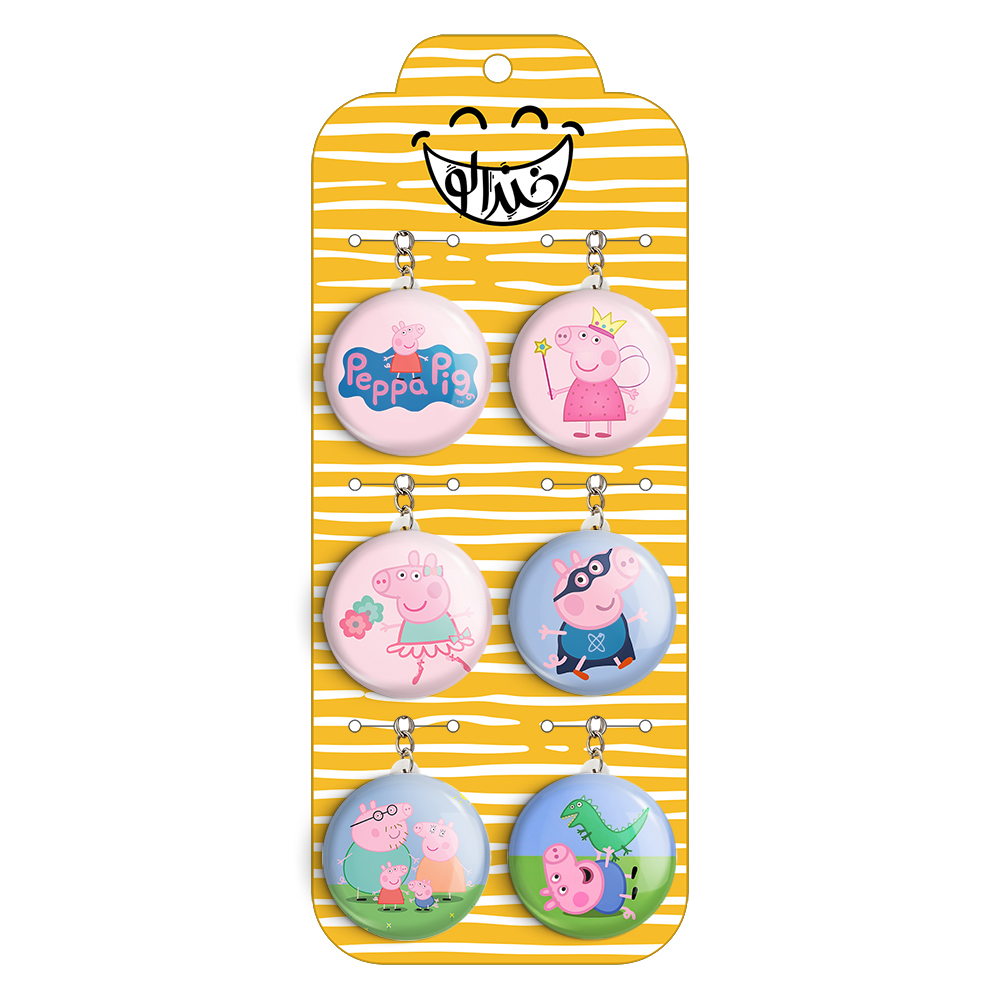 پک 6 عددی جاکلیدی خندالو طرح انیمیشن پپا پیگ (Peppa Pig) با استفاده از روکش سلفون حرارتی مات ضدخش تولید شده که خاصیت ضدخش بودن آن عمر مفید استفاده از جاکلیدی ها را افزایش میدهد. چاپ جاکلیدی ها با دستگاه های استاندارد و با بهترین سطح کیفیت صورت گرفته و طرح با شفافیتی مثال زدنی و با سلفون چسبی تولید شده است که باعث شده محصول نهایی بدون شکست نور دیده شود. همچنین بسته بندی جذاب و مینیمال جاکلیدی ها، آنها را محصولی مناسب هدیه کرده است. زنجیر و حلقه بکار برده شده در جاکلیدی خندالو از نوع حلقه درجه یک و ضخیم و محکم بوده و حین استفاده آسیب نمی بیند. قطعی پشتی جاکلیدی از جنس ABS شفاف سفید رنگ تولید شده که در مقابل خط و خش مقاوم بوده و به هیچ عنوان دچار شکستگی نخواهد شد.