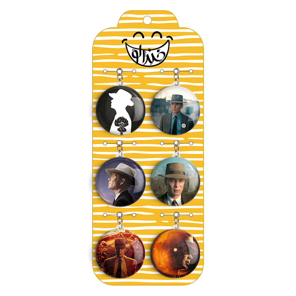 پک 6 عددی جاکلیدی خندالو طرح اوپنهایمر (Oppenheimer) با استفاده از روکش سلفون حرارتی مات ضدخش تولید شده که خاصیت ضدخش بودن آن عمر مفید استفاده از جاکلیدی ها را افزایش میدهد. چاپ جاکلیدی ها با دستگاه های استاندارد و با بهترین سطح کیفیت صورت گرفته و طرح با شفافیتی مثال زدنی و با سلفون چسبی تولید شده است که باعث شده محصول نهایی بدون شکست نور دیده شود. همچنین بسته بندی جذاب و مینیمال جاکلیدی ها، آنها را محصولی مناسب هدیه کرده است. زنجیر و حلقه بکار برده شده در جاکلیدی خندالو از نوع حلقه درجه یک و ضخیم و محکم بوده و حین استفاده آسیب نمی بیند. قطعی پشتی جاکلیدی از جنس ABS شفاف سفید رنگ تولید شده که در مقابل خط و خش مقاوم بوده و به هیچ عنوان دچار شکستگی نخواهد شد.