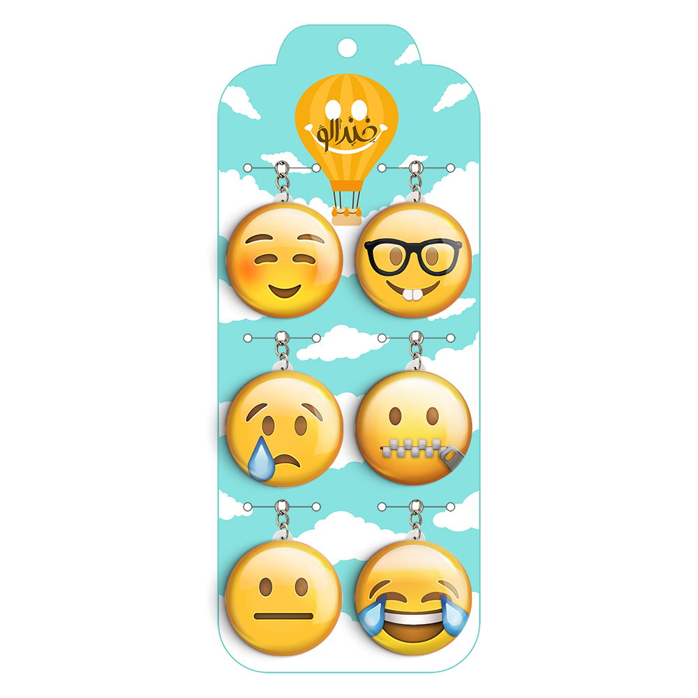 پک 6 عددی جاکلیدی خندالو طرح ایموجی (Emoji) با استفاده از روکش سلفون حرارتی مات ضدخش تولید شده که خاصیت ضدخش بودن آن عمر مفید استفاده از جاکلیدی ها را افزایش میدهد. چاپ جاکلیدی ها با دستگاه های استاندارد و با بهترین سطح کیفیت صورت گرفته و طرح با شفافیتی مثال زدنی و با سلفون چسبی تولید شده است که باعث شده محصول نهایی بدون شکست نور دیده شود.