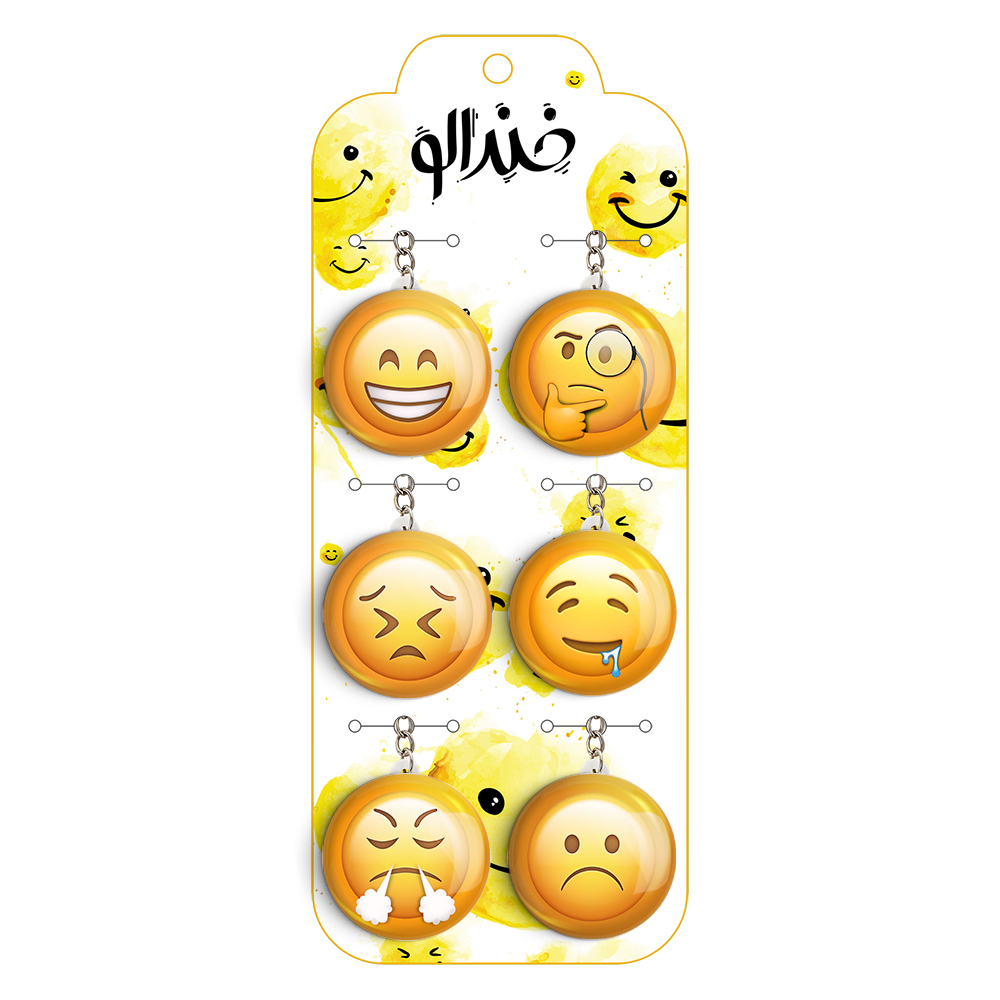 پک 6 عددی جاکلیدی خندالو طرح ایموجی (Emoji) با استفاده از روکش سلفون حرارتی مات ضدخش تولید شده که خاصیت ضدخش بودن آن عمر مفید استفاده از جاکلیدی ها را افزایش میدهد. چاپ جاکلیدی ها با دستگاه های استاندارد و با بهترین سطح کیفیت صورت گرفته و طرح با شفافیتی مثال زدنی و با سلفون چسبی تولید شده است که باعث شده محصول نهایی بدون شکست نور دیده شود. همچنین بسته بندی جذاب و مینیمال جاکلیدی ها، آنها را محصولی مناسب هدیه کرده است. زنجیر و حلقه بکار برده شده در جاکلیدی خندالو از نوع حلقه درجه یک و ضخیم و محکم بوده و حین استفاده آسیب نمی بیند. قطعی پشتی جاکلیدی از جنس ABS شفاف سفید رنگ تولید شده که در مقابل خط و خش مقاوم بوده و به هیچ عنوان دچار شکستگی نخواهد شد.