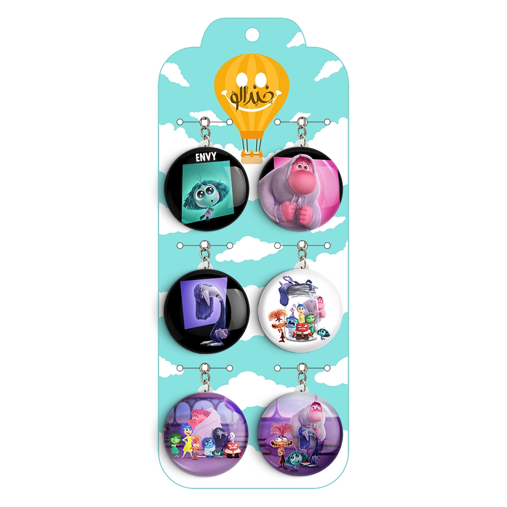 پک 6 عددی جاکلیدی خندالو طرح اینساید اوت (Inside Out) با استفاده از روکش سلفون حرارتی مات ضدخش تولید شده که خاصیت ضدخش بودن آن عمر مفید استفاده از جاکلیدی ها را افزایش میدهد. چاپ جاکلیدی ها با دستگاه های استاندارد و با بهترین سطح کیفیت صورت گرفته و طرح با شفافیتی مثال زدنی و با سلفون چسبی تولید شده است که باعث شده محصول نهایی بدون شکست نور دیده شود. همچنین بسته بندی جذاب و مینیمال جاکلیدی ها، آنها را محصولی مناسب هدیه کرده است. زنجیر و حلقه بکار برده شده در جاکلیدی خندالو از نوع حلقه درجه یک و ضخیم و محکم بوده و حین استفاده آسیب نمی بیند. قطعی پشتی جاکلیدی از جنس ABS شفاف سفید رنگ تولید شده که در مقابل خط و خش مقاوم بوده و به هیچ عنوان دچار شکستگی نخواهد شد.