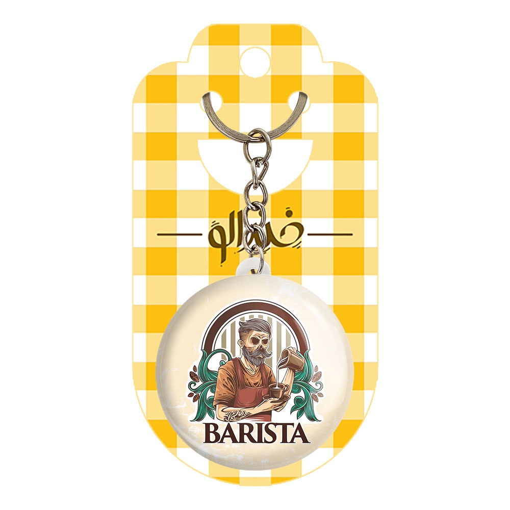 خندالو جاکلیدی باریستا کافه چی را با استفاده از روکش سلفون حرارتی مات مخملی ضدخش تولید می کند که خاصیت ضدخش بودن آن، کمک میکند تا عمر مفید استفاده از جاکلیدی ها افزایش پیدا کند و با یک خراش ساده مثل برخورد سطح ناخن با محصول، دچار و خط و خش نشود.