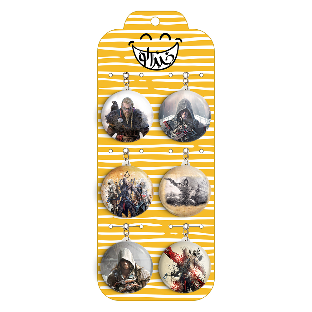 پک 6 عددی جاکلیدی خندالو طرح بازی اساسینز کرید (Assassin’s Creed) با استفاده از روکش سلفون حرارتی مات ضدخش تولید شده که خاصیت ضدخش بودن آن عمر مفید استفاده از جاکلیدی ها را افزایش میدهد. چاپ جاکلیدی ها با دستگاه های استاندارد و با بهترین سطح کیفیت صورت گرفته و طرح با شفافیتی مثال زدنی و با سلفون چسبی تولید شده است که باعث شده محصول نهایی بدون شکست نور دیده شود.