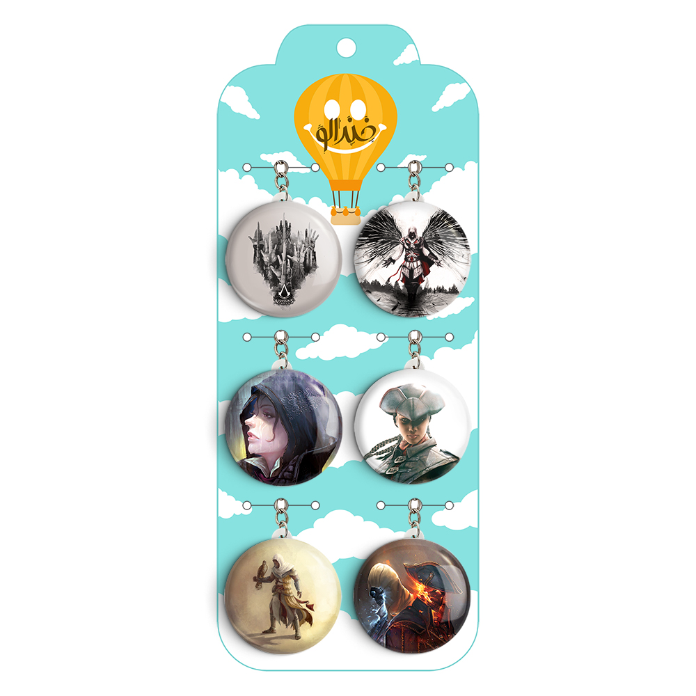 پک 6 عددی جاکلیدی خندالو طرح بازی اساسینز کرید (Assassin’s Creed) با استفاده از روکش سلفون حرارتی مات ضدخش تولید شده که خاصیت ضدخش بودن آن عمر مفید استفاده از جاکلیدی ها را افزایش میدهد. چاپ جاکلیدی ها با دستگاه های استاندارد و با بهترین سطح کیفیت صورت گرفته و طرح با شفافیتی مثال زدنی و با سلفون چسبی تولید شده است که باعث شده محصول نهایی بدون شکست نور دیده شود.