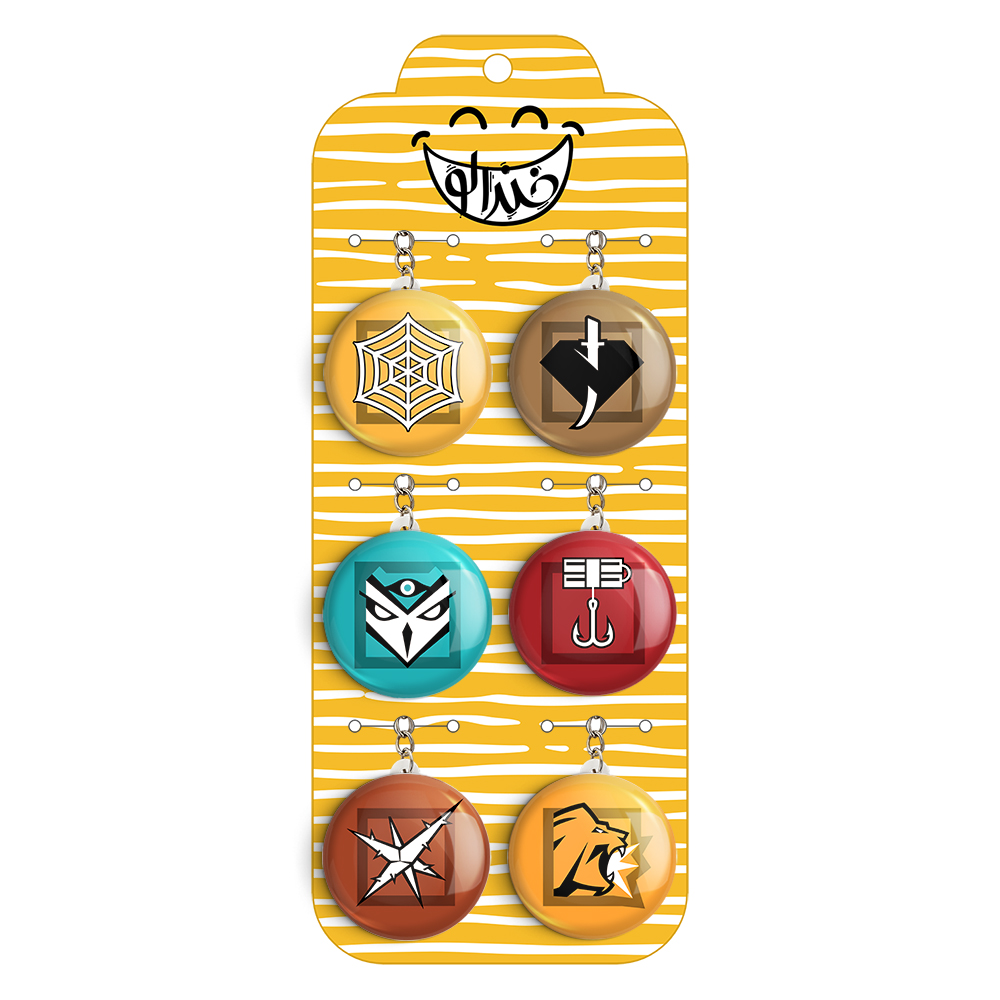 پک 6 عددی جاکلیدی خندالو طرح بازی رینبو سیکس سیج (Rainbow Six Siege) با استفاده از روکش سلفون حرارتی مات ضدخش تولید شده که خاصیت ضدخش بودن آن عمر مفید استفاده از جاکلیدی ها را افزایش میدهد. چاپ جاکلیدی ها با دستگاه های استاندارد و با بهترین سطح کیفیت صورت گرفته و طرح با شفافیتی مثال زدنی و با سلفون چسبی تولید شده است که باعث شده محصول نهایی بدون شکست نور دیده شود.