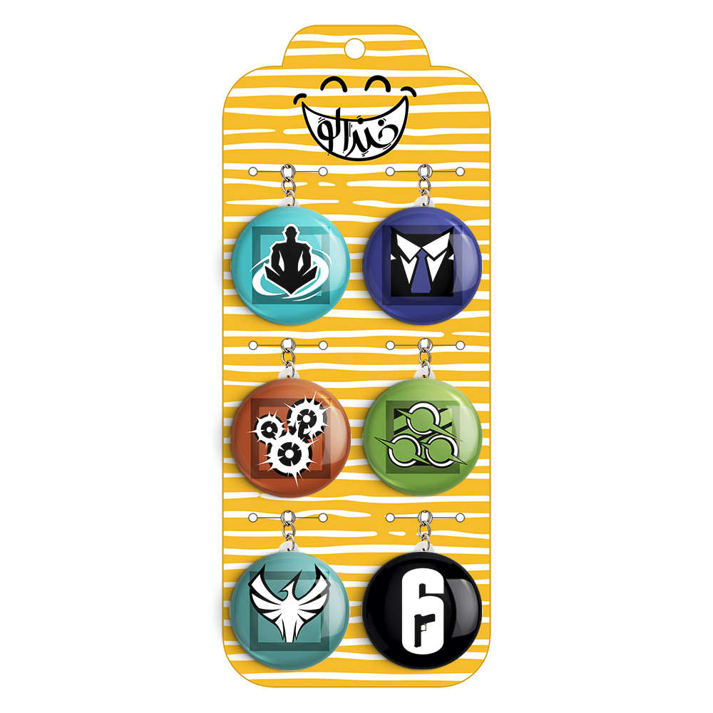پک 6 عددی جاکلیدی خندالو طرح بازی رینبو سیکس سیج (Rainbow Six Siege) با استفاده از روکش سلفون حرارتی مات ضدخش تولید شده که خاصیت ضدخش بودن آن عمر مفید استفاده از جاکلیدی ها را افزایش میدهد. چاپ جاکلیدی ها با دستگاه های استاندارد و با بهترین سطح کیفیت صورت گرفته و طرح با شفافیتی مثال زدنی و با سلفون چسبی تولید شده است که باعث شده محصول نهایی بدون شکست نور دیده شود.
