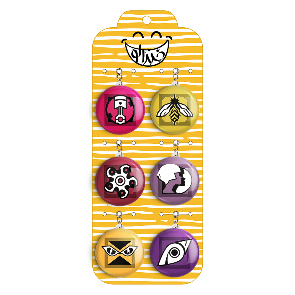 پک 6 عددی جاکلیدی خندالو طرح بازی رینبو سیکس سیج (Rainbow Six Siege) با استفاده از روکش سلفون حرارتی مات ضدخش تولید شده که خاصیت ضدخش بودن آن عمر مفید استفاده از جاکلیدی ها را افزایش میدهد. چاپ جاکلیدی ها با دستگاه های استاندارد و با بهترین سطح کیفیت صورت گرفته و طرح با شفافیتی مثال زدنی و با سلفون چسبی تولید شده است که باعث شده محصول نهایی بدون شکست نور دیده شود.
