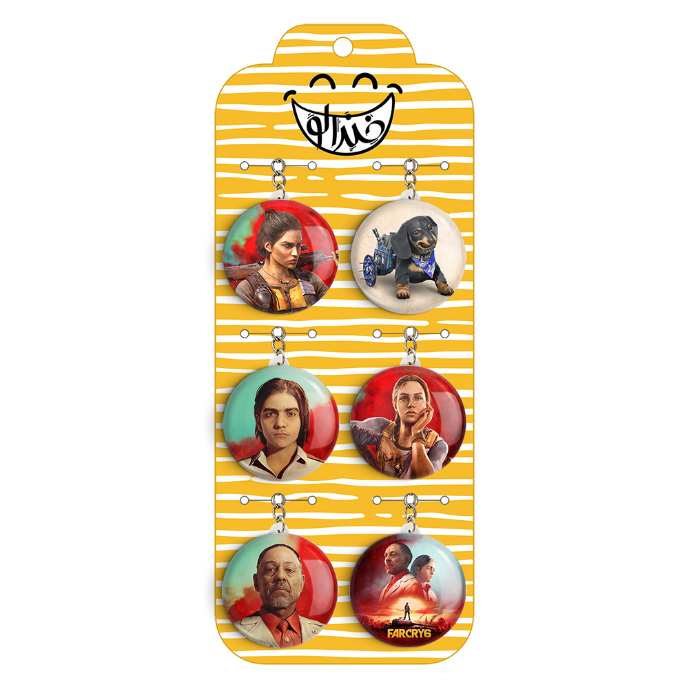 پک 6 عددی جاکلیدی خندالو طرح بازی فارکرای (Far Cry) با استفاده از روکش سلفون حرارتی مات ضدخش تولید شده که خاصیت ضدخش بودن آن عمر مفید استفاده از جاکلیدی ها را افزایش میدهد. چاپ جاکلیدی ها با دستگاه های استاندارد و با بهترین سطح کیفیت صورت گرفته و طرح با شفافیتی مثال زدنی و با سلفون چسبی تولید شده است که باعث شده محصول نهایی بدون شکست نور دیده شود. همچنین بسته بندی جذاب و مینیمال جاکلیدی ها، آنها را محصولی مناسب هدیه کرده است. زنجیر و حلقه بکار برده شده در جاکلیدی خندالو از نوع حلقه درجه یک و ضخیم و محکم بوده و حین استفاده آسیب نمی بیند. قطعی پشتی جاکلیدی از جنس ABS شفاف سفید رنگ تولید شده که در مقابل خط و خش مقاوم بوده و به هیچ عنوان دچار شکستگی نخواهد شد.