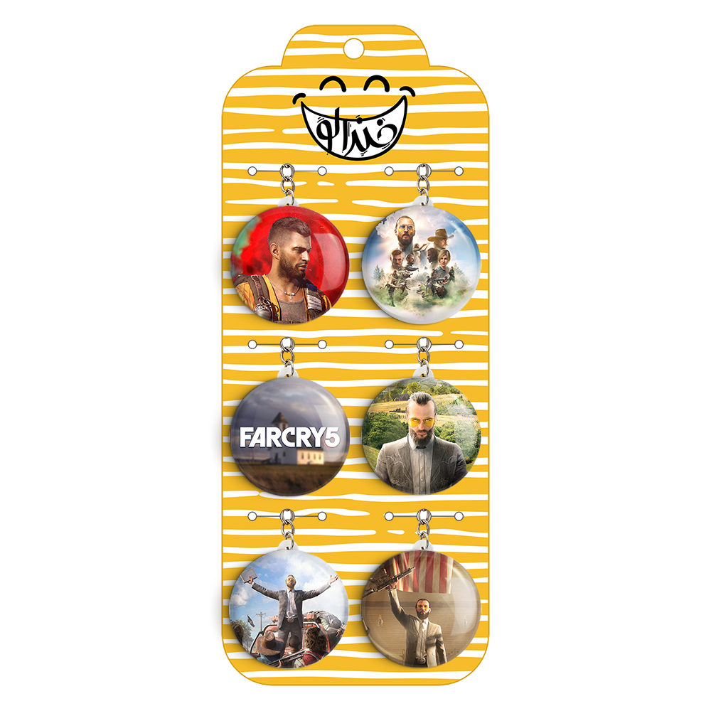 پک 6 عددی جاکلیدی خندالو طرح بازی فارکرای (Far Cry) با استفاده از روکش سلفون حرارتی مات ضدخش تولید شده که خاصیت ضدخش بودن آن عمر مفید استفاده از جاکلیدی ها را افزایش میدهد. چاپ جاکلیدی ها با دستگاه های استاندارد و با بهترین سطح کیفیت صورت گرفته و طرح با شفافیتی مثال زدنی و با سلفون چسبی تولید شده است که باعث شده محصول نهایی بدون شکست نور دیده شود. همچنین بسته بندی جذاب و مینیمال جاکلیدی ها، آنها را محصولی مناسب هدیه کرده است. زنجیر و حلقه بکار برده شده در جاکلیدی خندالو از نوع حلقه درجه یک و ضخیم و محکم بوده و حین استفاده آسیب نمی بیند. قطعی پشتی جاکلیدی از جنس ABS شفاف سفید رنگ تولید شده که در مقابل خط و خش مقاوم بوده و به هیچ عنوان دچار شکستگی نخواهد شد.