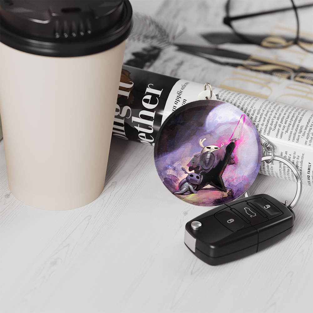 خندالو جاکلیدی بازی هالو نایت (Hollow Knight) را با استفاده از روکش سلفون حرارتی مات مخملی ضدخش تولید می کند که خاصیت ضدخش بودن آن، کمک میکند تا عمر مفید استفاده از جاکلیدی ها افزایش پیدا کند و با یک خراش ساده مثل برخورد سطح ناخن با محصول، دچار و خط و خش نشود.