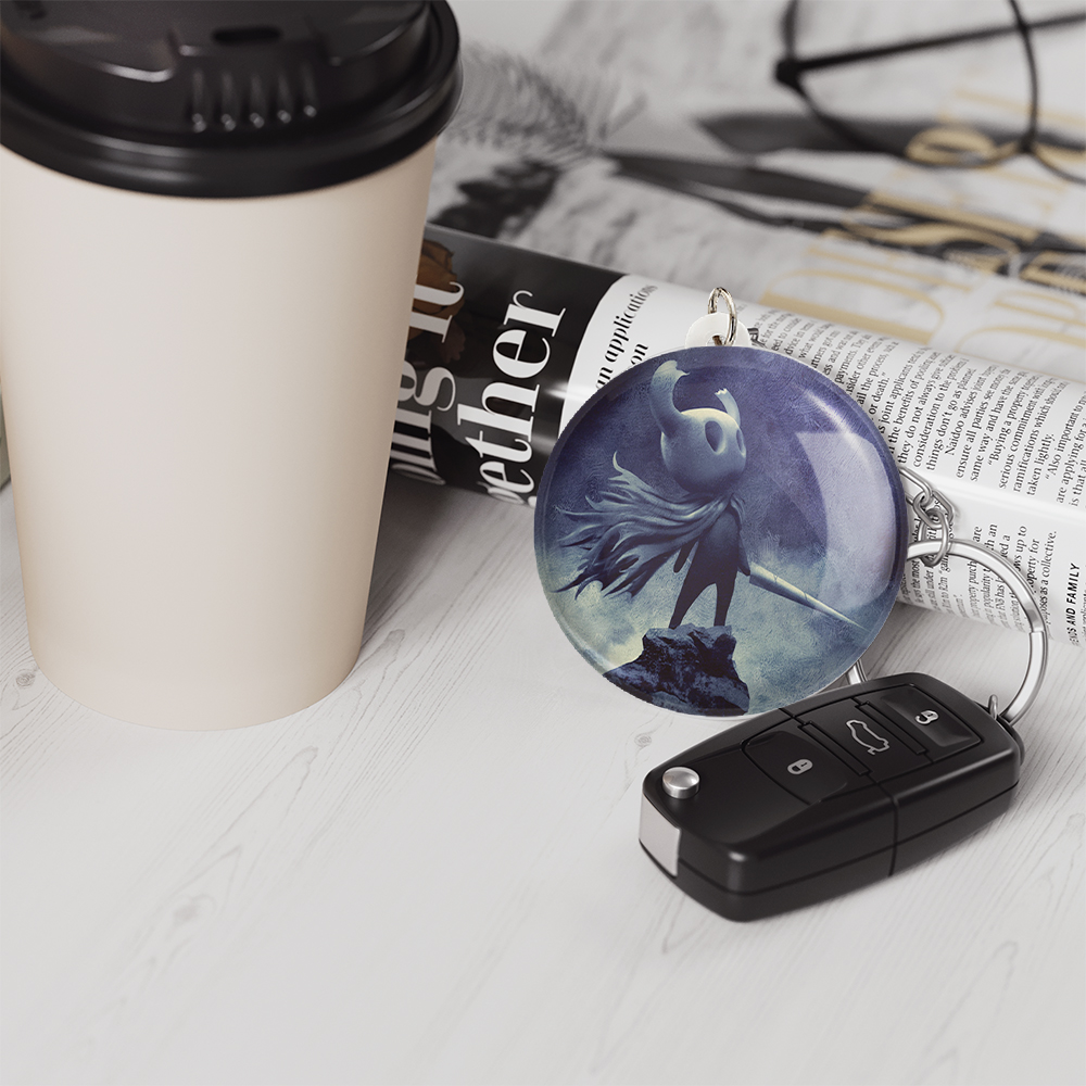 خندالو جاکلیدی بازی هالو نایت (Hollow Knight) را با استفاده از روکش سلفون حرارتی مات مخملی ضدخش تولید می کند که خاصیت ضدخش بودن آن، کمک میکند تا عمر مفید استفاده از جاکلیدی ها افزایش پیدا کند و با یک خراش ساده مثل برخورد سطح ناخن با محصول، دچار و خط و خش نشود.