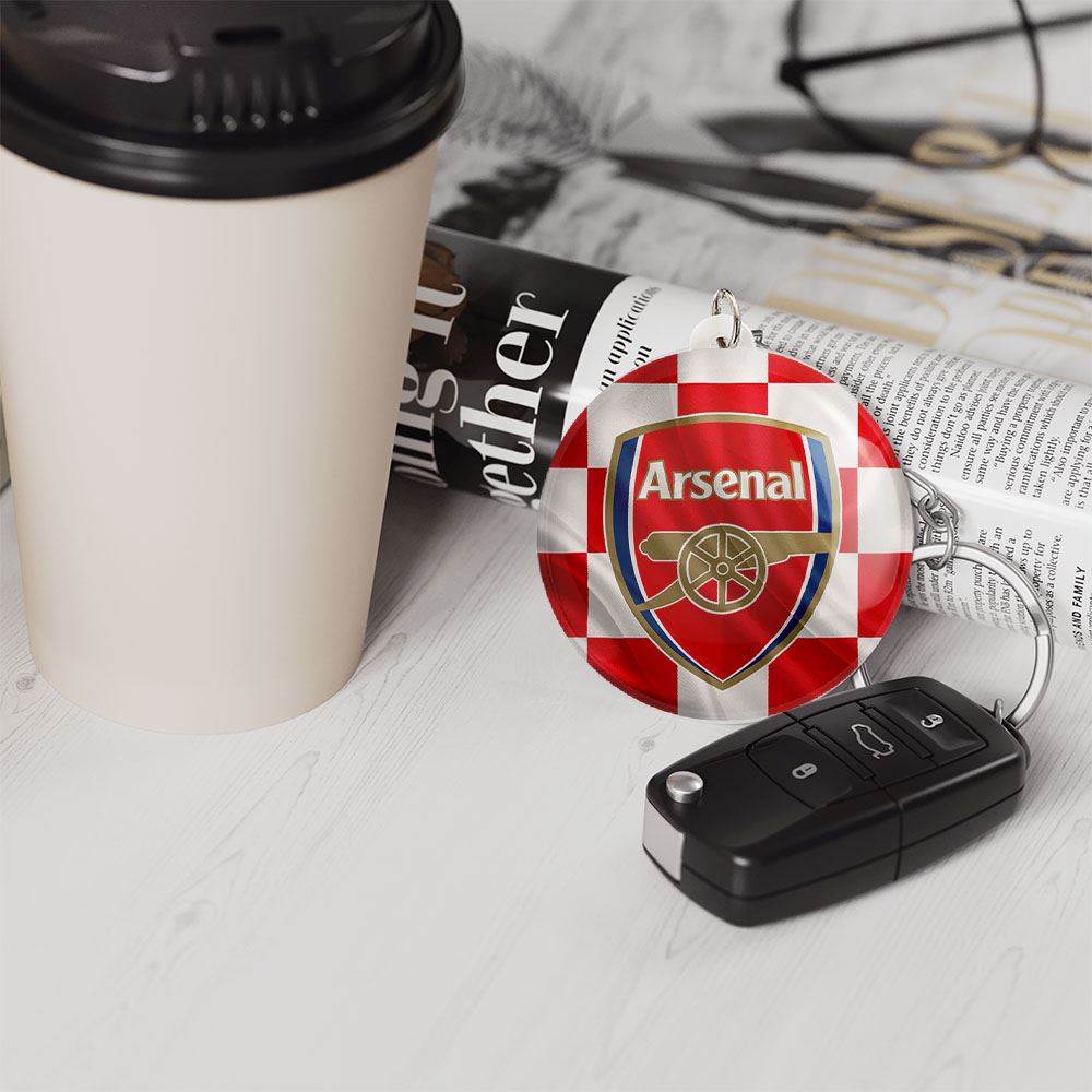 خندالو جاکلیدی باشگاه آرسنال را با استفاده از روکش سلفون حرارتی مات مخملی ضدخش تولید می کند که خاصیت ضدخش بودن آن، کمک میکند تا عمر مفید استفاده از جاکلیدی ها افزایش پیدا کند و با یک خراش ساده مثل برخورد سطح ناخن با محصول، دچار و خط و خش نشود.