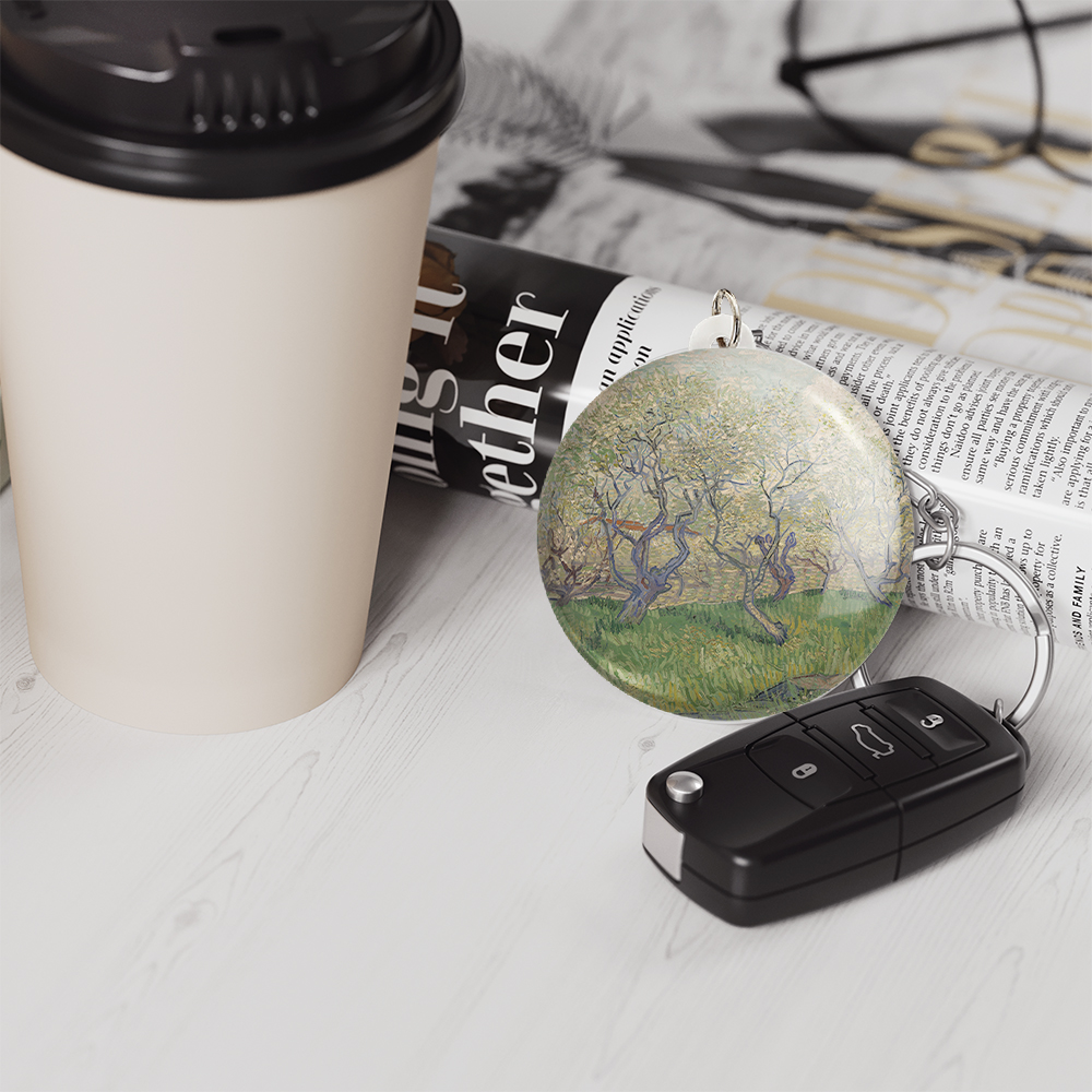 جاکلیدی باغ های در حال شکوفه دادن ونسان ونگوگ (Van Gogh) صرفا برای آویز کلید نیست و میتوان آن را به عنوان آویز زینتی از زیپ کیف، آیینه جلوی خودرو، درب کمد دیواری اتاق ها و… آویزان کرد.