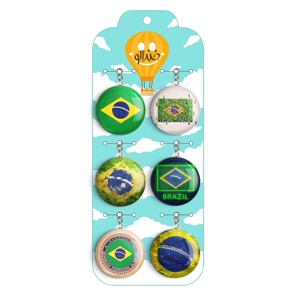 پک 6 عددی جاکلیدی خندالو طرح برزیل (Brazil) با استفاده از روکش سلفون حرارتی مات ضدخش تولید شده که خاصیت ضدخش بودن آن عمر مفید استفاده از جاکلیدی ها را افزایش میدهد. چاپ جاکلیدی ها با دستگاه های استاندارد و با بهترین سطح کیفیت صورت گرفته و طرح با شفافیتی مثال زدنی و با سلفون چسبی تولید شده است که باعث شده محصول نهایی بدون شکست نور دیده شود. همچنین بسته بندی جذاب و مینیمال جاکلیدی ها، آنها را محصولی مناسب هدیه کرده است. زنجیر و حلقه بکار برده شده در جاکلیدی خندالو از نوع حلقه درجه یک و ضخیم و محکم بوده و حین استفاده آسیب نمی بیند. قطعی پشتی جاکلیدی از جنس ABS شفاف سفید رنگ تولید شده که در مقابل خط و خش مقاوم بوده و به هیچ عنوان دچار شکستگی نخواهد شد.