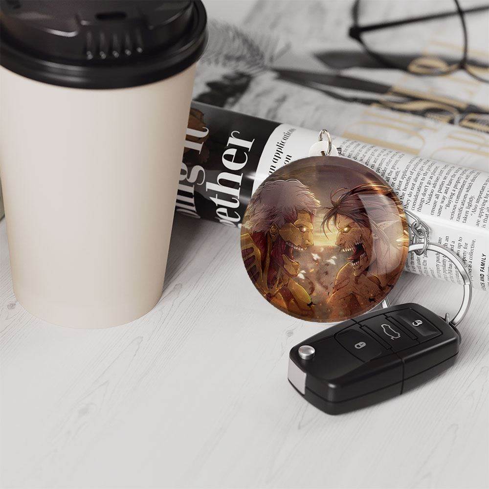 چاپ جاکلیدی تایتان ها انیمه اتک آن تایتان Attack on Titan با دستگاه های استاندارد و با بهترین سطح کیفیت صورت گرفته و طرح با شفافیتی مثال زدنی و با سلفون حرارتی مات مخملی ضدخش تولید شده است که باعث می شود محصول نهایی بدون شکست نور دیده شود.