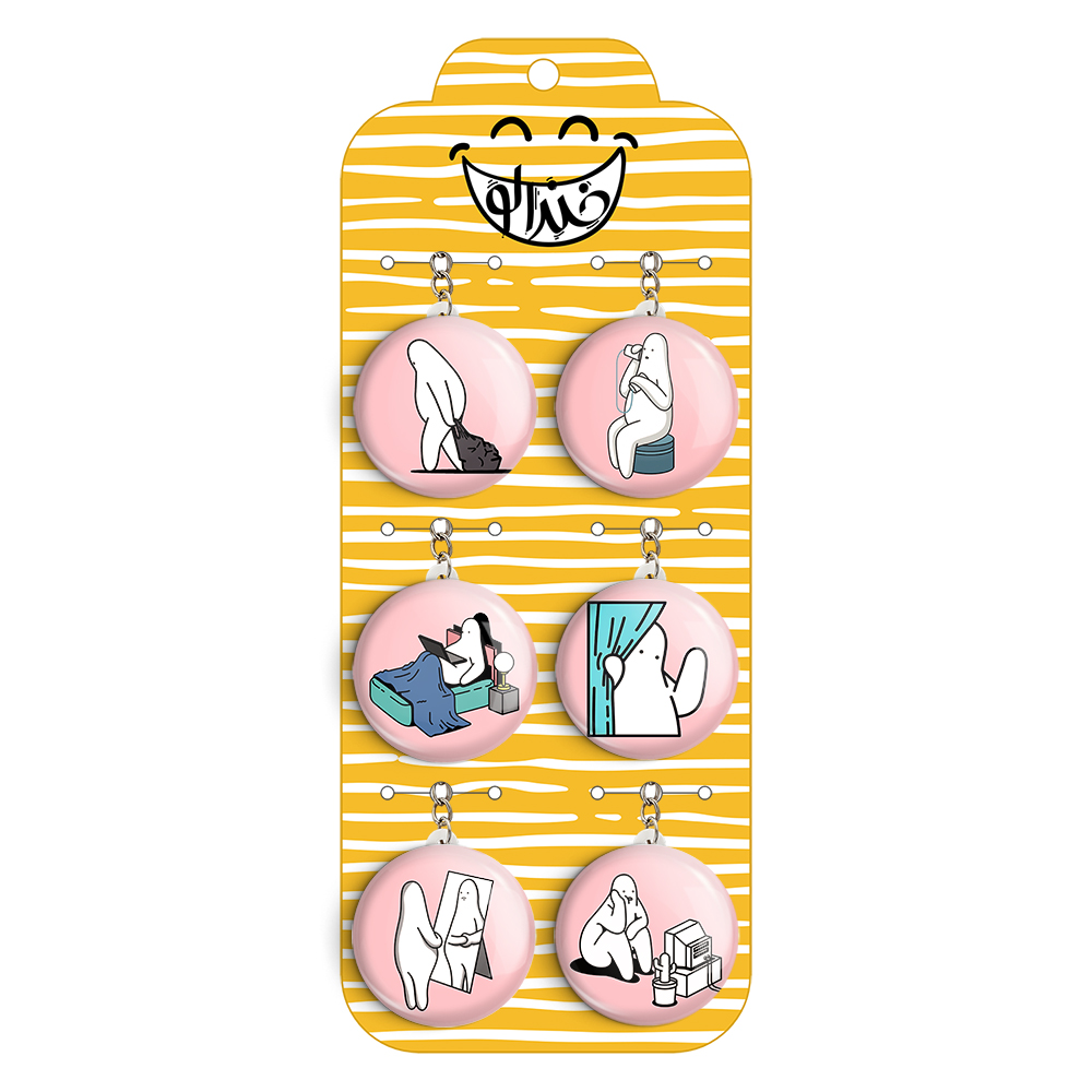 پک 6 عددی جاکلیدی خندالو طرح تنبل خسته با استفاده از روکش سلفون حرارتی مات ضدخش تولید شده که خاصیت ضدخش بودن آن عمر مفید استفاده از جاکلیدی ها را افزایش میدهد. چاپ جاکلیدی ها با دستگاه های استاندارد و با بهترین سطح کیفیت صورت گرفته و طرح با شفافیتی مثال زدنی و با سلفون چسبی تولید شده است که باعث شده محصول نهایی بدون شکست نور دیده شود.