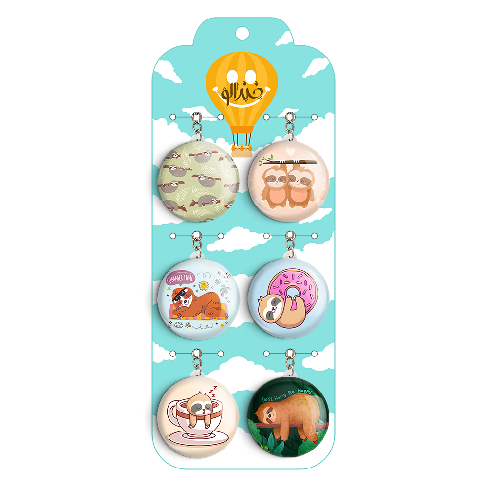 پک 6 عددی جاکلیدی خندالو طرح تنبل (Sloths) با استفاده از روکش سلفون حرارتی مات ضدخش تولید شده که خاصیت ضدخش بودن آن عمر مفید استفاده از جاکلیدی ها را افزایش میدهد. چاپ جاکلیدی ها با دستگاه های استاندارد و با بهترین سطح کیفیت صورت گرفته و طرح با شفافیتی مثال زدنی و با سلفون چسبی تولید شده است که باعث شده محصول نهایی بدون شکست نور دیده شود.