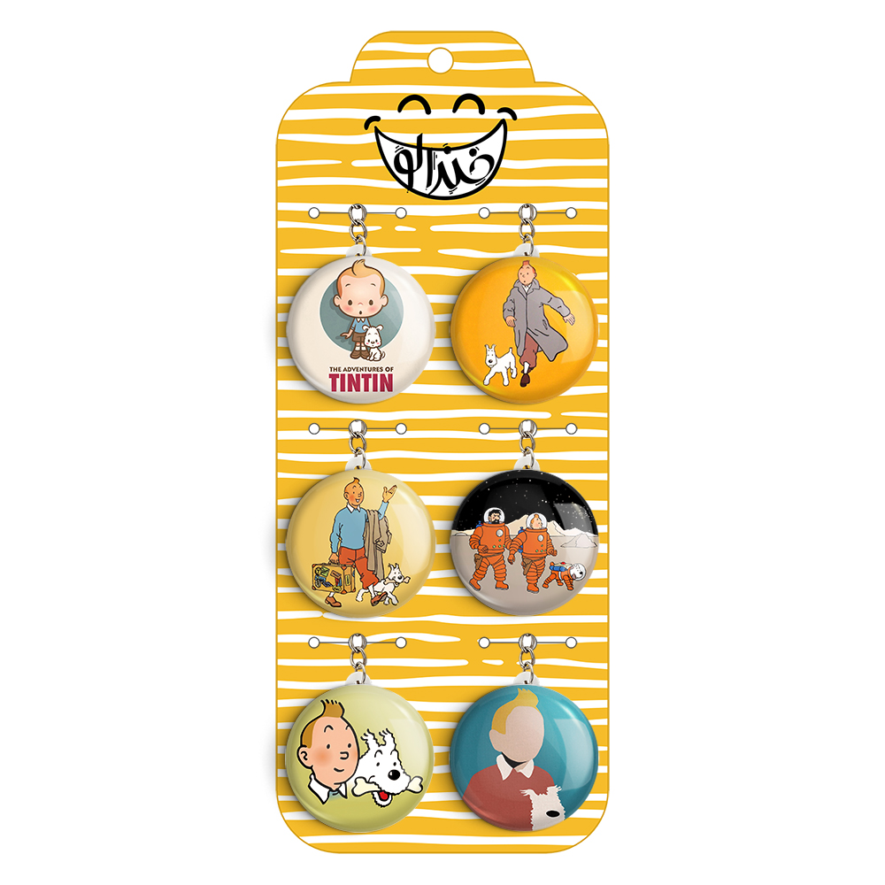 پک 6 عددی جاکلیدی خندالو طرح تن تن (Tintin) با استفاده از روکش سلفون حرارتی مات ضدخش تولید شده که خاصیت ضدخش بودن آن عمر مفید استفاده از جاکلیدی ها را افزایش میدهد. چاپ جاکلیدی ها با دستگاه های استاندارد و با بهترین سطح کیفیت صورت گرفته و طرح با شفافیتی مثال زدنی و با سلفون چسبی تولید شده است که باعث شده محصول نهایی بدون شکست نور دیده شود. همچنین بسته بندی جذاب و مینیمال جاکلیدی ها، آنها را محصولی مناسب هدیه کرده است. زنجیر و حلقه بکار برده شده در جاکلیدی خندالو از نوع حلقه درجه یک و ضخیم و محکم بوده و حین استفاده آسیب نمی بیند. قطعی پشتی جاکلیدی از جنس ABS شفاف سفید رنگ تولید شده که در مقابل خط و خش مقاوم بوده و به هیچ عنوان دچار شکستگی نخواهد شد.
