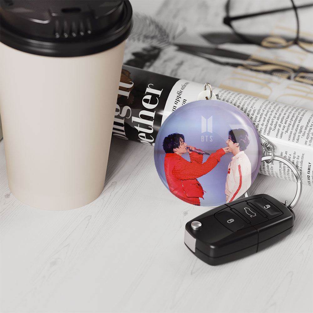 خندالو جاکلیدی تهیونگ و جونگ کوک ویکوک گروه بی تی اس BTS را با استفاده از روکش سلفون حرارتی مات مخملی ضدخش تولید می کند که خاصیت ضدخش بودن آن، کمک میکند تا عمر مفید استفاده از جاکلیدی ها افزایش پیدا کند و با یک خراش ساده مثل برخورد سطح ناخن با محصول، دچار و خط و خش نشود.