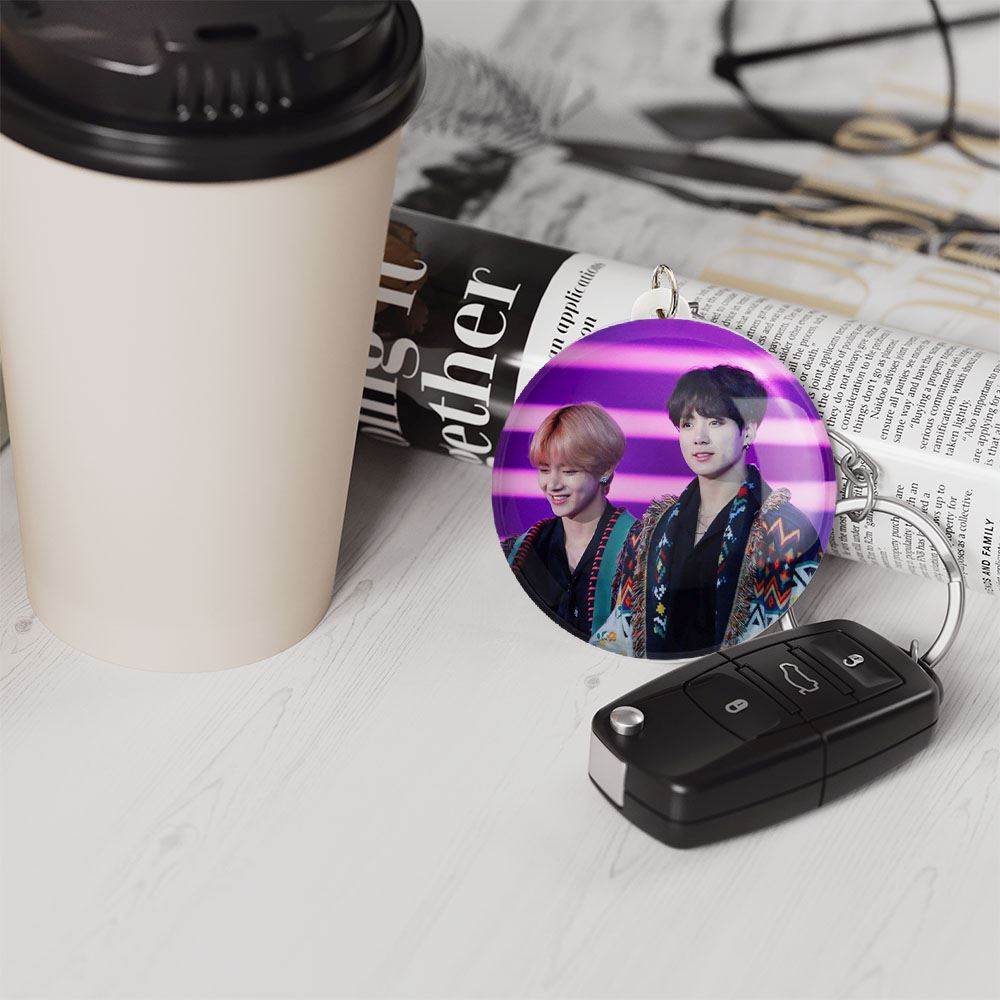 خندالو جاکلیدی تهیونگ و جونگ کوک ویکوک گروه بی تی اس BTS را با استفاده از روکش سلفون حرارتی مات مخملی ضدخش تولید می کند که خاصیت ضدخش بودن آن، کمک میکند تا عمر مفید استفاده از جاکلیدی ها افزایش پیدا کند و با یک خراش ساده مثل برخورد سطح ناخن با محصول، دچار و خط و خش نشود.
