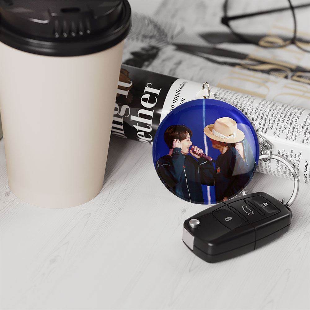 خندالو جاکلیدی تهیونگ و جونگ کوک ویکوک گروه بی تی اس BTS را با استفاده از روکش سلفون حرارتی مات مخملی ضدخش تولید می کند که خاصیت ضدخش بودن آن، کمک میکند تا عمر مفید استفاده از جاکلیدی ها افزایش پیدا کند و با یک خراش ساده مثل برخورد سطح ناخن با محصول، دچار و خط و خش نشود.
