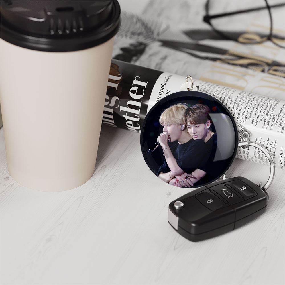 خندالو جاکلیدی تهیونگ و جونگ کوک ویکوک گروه بی تی اس BTS را با استفاده از روکش سلفون حرارتی مات مخملی ضدخش تولید می کند که خاصیت ضدخش بودن آن، کمک میکند تا عمر مفید استفاده از جاکلیدی ها افزایش پیدا کند و با یک خراش ساده مثل برخورد سطح ناخن با محصول، دچار و خط و خش نشود.