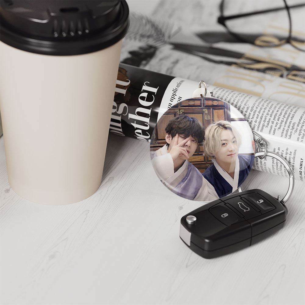 خندالو جاکلیدی تهیونگ و جونگ کوک ویکوک گروه بی تی اس BTS را با استفاده از روکش سلفون حرارتی مات مخملی ضدخش تولید می کند که خاصیت ضدخش بودن آن، کمک میکند تا عمر مفید استفاده از جاکلیدی ها افزایش پیدا کند و با یک خراش ساده مثل برخورد سطح ناخن با محصول، دچار و خط و خش نشود.
