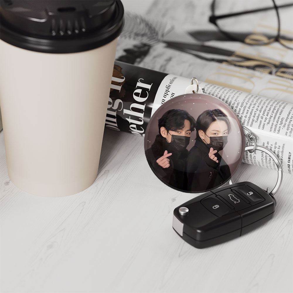 خندالو جاکلیدی تهیونگ و جونگ کوک ویکوک گروه بی تی اس BTS را با استفاده از روکش سلفون حرارتی مات مخملی ضدخش تولید می کند که خاصیت ضدخش بودن آن، کمک میکند تا عمر مفید استفاده از جاکلیدی ها افزایش پیدا کند و با یک خراش ساده مثل برخورد سطح ناخن با محصول، دچار و خط و خش نشود.