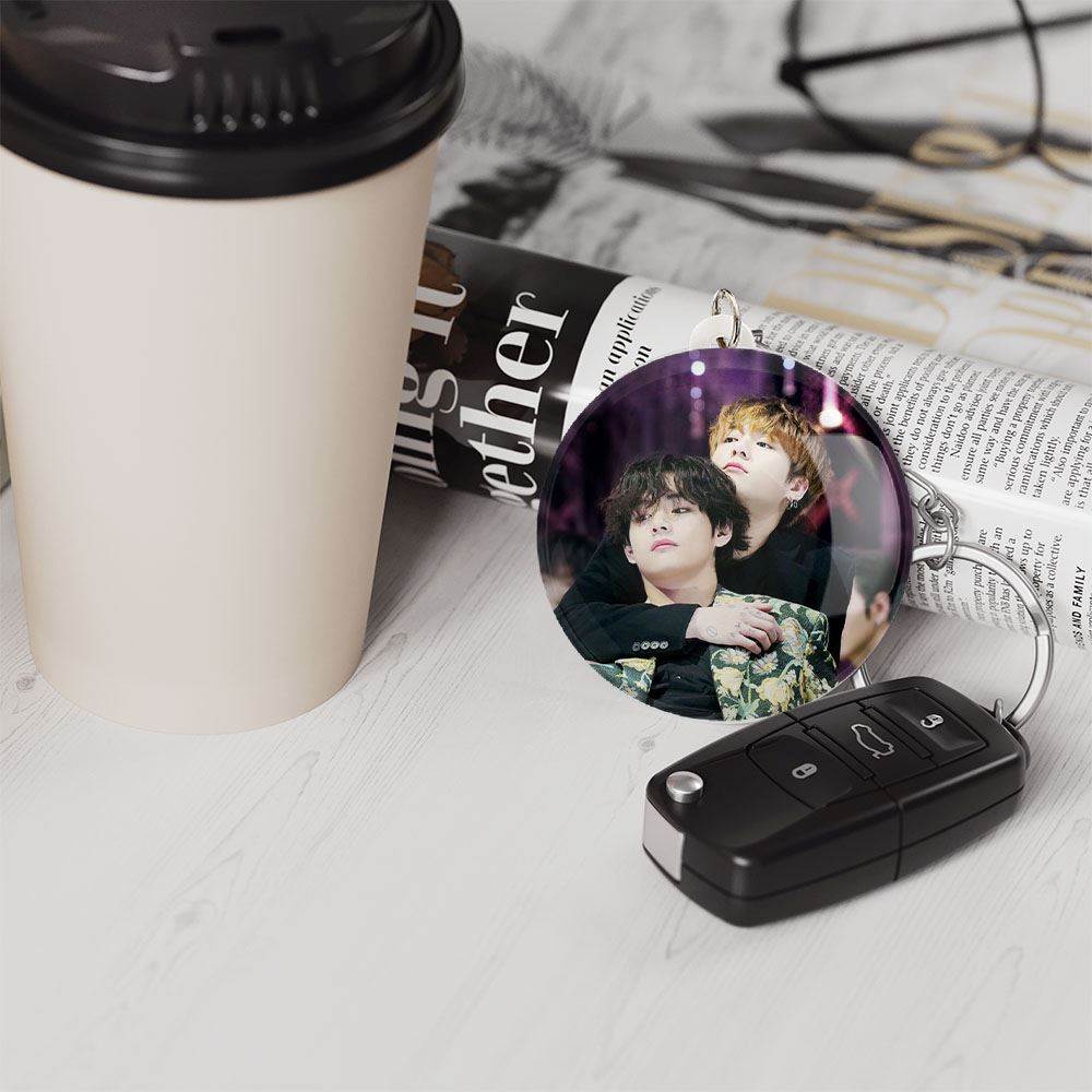 خندالو جاکلیدی تهیونگ و جونگ کوک ویکوک گروه بی تی اس BTS را با استفاده از روکش سلفون حرارتی مات مخملی ضدخش تولید می کند که خاصیت ضدخش بودن آن، کمک میکند تا عمر مفید استفاده از جاکلیدی ها افزایش پیدا کند و با یک خراش ساده مثل برخورد سطح ناخن با محصول، دچار و خط و خش نشود.