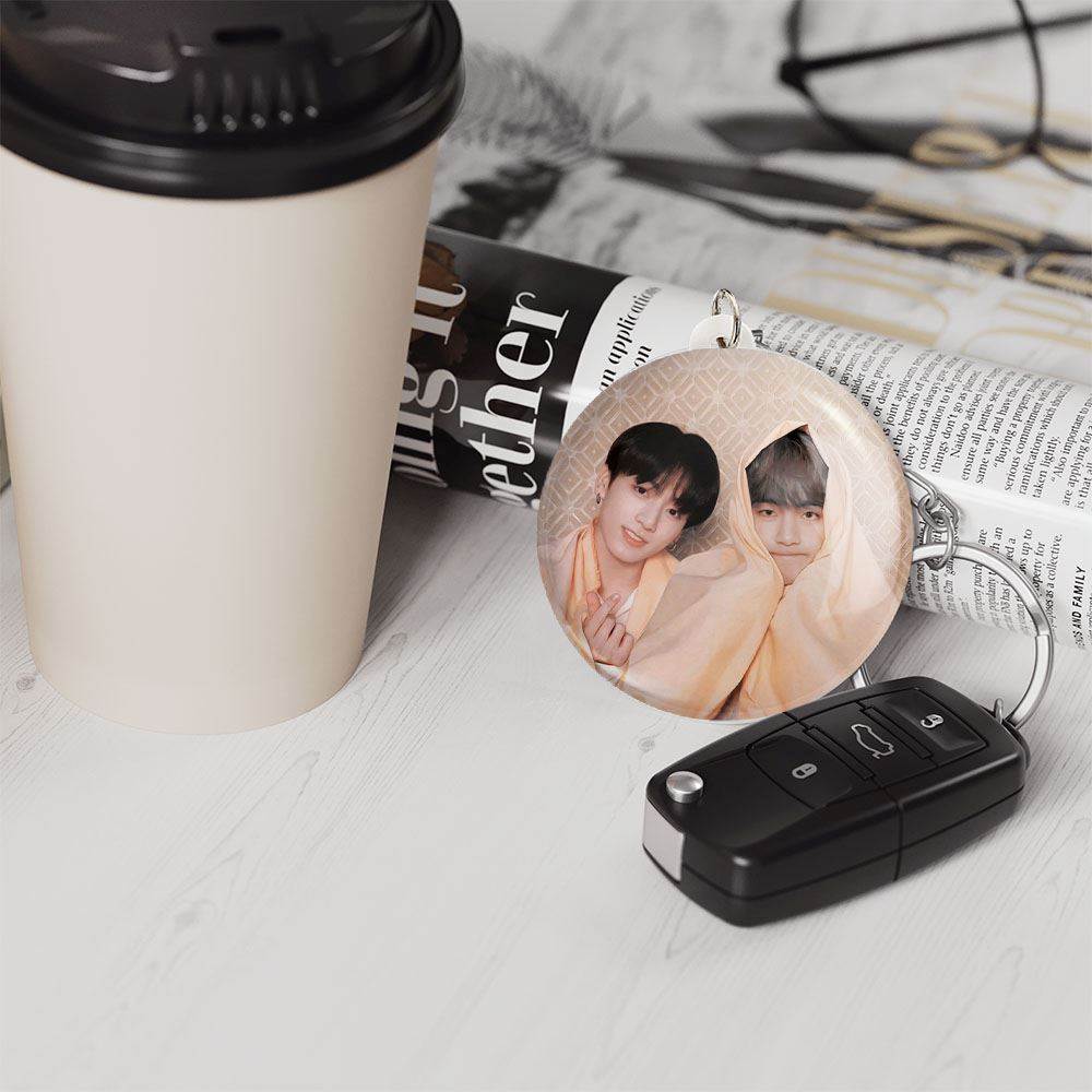 خندالو جاکلیدی تهیونگ و جونگ کوک ویکوک گروه بی تی اس BTS را با استفاده از روکش سلفون حرارتی مات مخملی ضدخش تولید می کند که خاصیت ضدخش بودن آن، کمک میکند تا عمر مفید استفاده از جاکلیدی ها افزایش پیدا کند و با یک خراش ساده مثل برخورد سطح ناخن با محصول، دچار و خط و خش نشود.