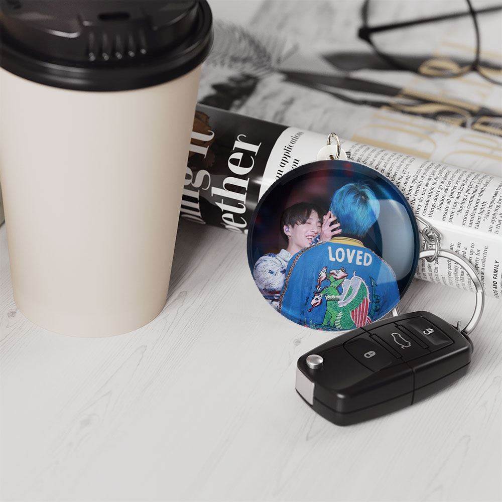 خندالو جاکلیدی تهیونگ و جونگ کوک ویکوک گروه بی تی اس BTS را با استفاده از روکش سلفون حرارتی مات مخملی ضدخش تولید می کند که خاصیت ضدخش بودن آن، کمک میکند تا عمر مفید استفاده از جاکلیدی ها افزایش پیدا کند و با یک خراش ساده مثل برخورد سطح ناخن با محصول، دچار و خط و خش نشود.