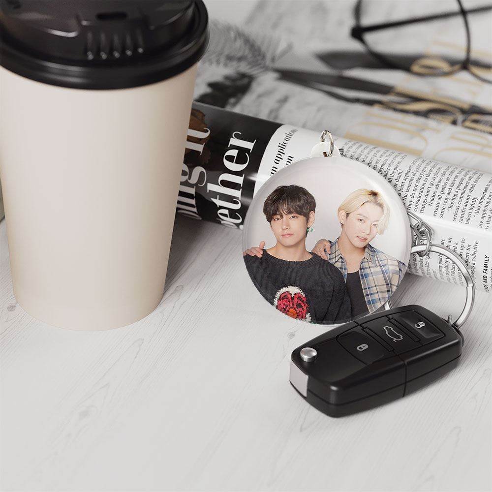 خندالو جاکلیدی تهیونگ و جونگ کوک ویکوک گروه بی تی اس BTS را با استفاده از روکش سلفون حرارتی مات مخملی ضدخش تولید می کند که خاصیت ضدخش بودن آن، کمک میکند تا عمر مفید استفاده از جاکلیدی ها افزایش پیدا کند و با یک خراش ساده مثل برخورد سطح ناخن با محصول، دچار و خط و خش نشود.