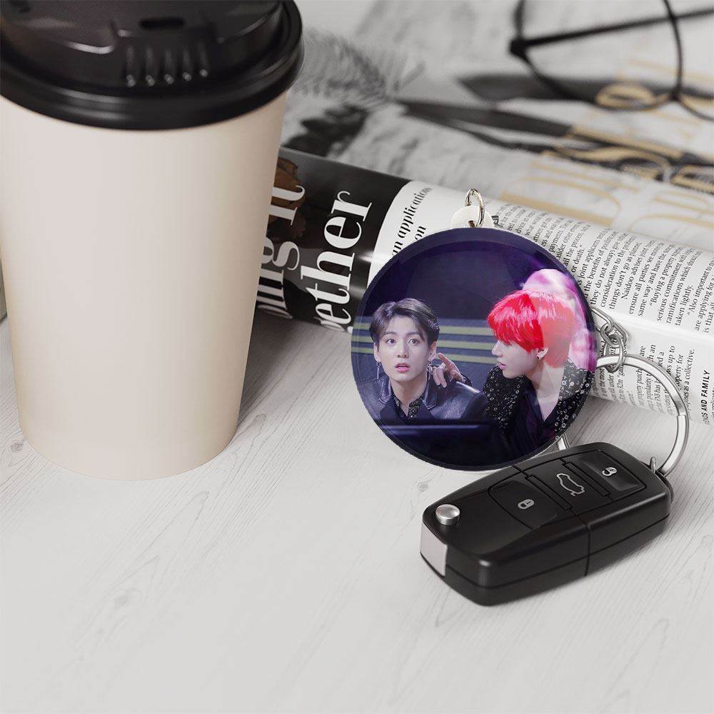 خندالو جاکلیدی تهیونگ و جونگ کوک ویکوک گروه بی تی اس BTS را با استفاده از روکش سلفون حرارتی مات مخملی ضدخش تولید می کند که خاصیت ضدخش بودن آن، کمک میکند تا عمر مفید استفاده از جاکلیدی ها افزایش پیدا کند و با یک خراش ساده مثل برخورد سطح ناخن با محصول، دچار و خط و خش نشود.