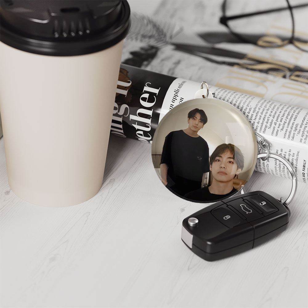 خندالو جاکلیدی تهیونگ و جونگ کوک ویکوک گروه بی تی اس BTS را با استفاده از روکش سلفون حرارتی مات مخملی ضدخش تولید می کند که خاصیت ضدخش بودن آن، کمک میکند تا عمر مفید استفاده از جاکلیدی ها افزایش پیدا کند و با یک خراش ساده مثل برخورد سطح ناخن با محصول، دچار و خط و خش نشود.