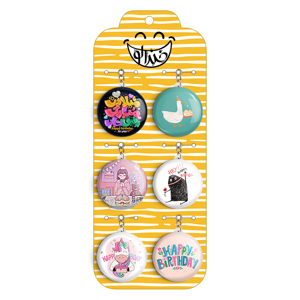 پک 6 عددی جاکلیدی خندالو طرح تولد با استفاده از روکش سلفون حرارتی مات ضدخش تولید شده که خاصیت ضدخش بودن آن عمر مفید استفاده از جاکلیدی ها را افزایش میدهد. چاپ جاکلیدی ها با دستگاه های استاندارد و با بهترین سطح کیفیت صورت گرفته و طرح با شفافیتی مثال زدنی و با سلفون چسبی تولید شده است که باعث شده محصول نهایی بدون شکست نور دیده شود.